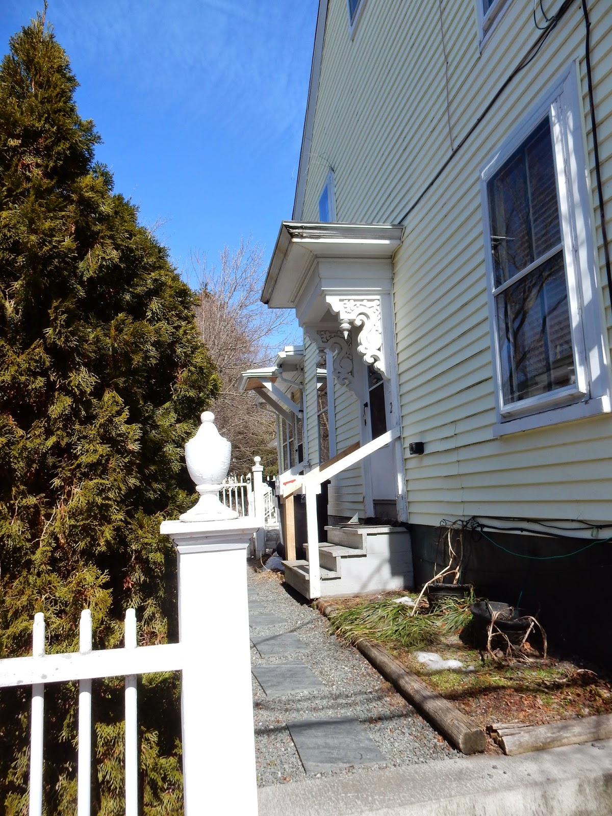 The address is 60 Main Street. Linda met me and I liked her right away. Nice lady, very interested in sharing with me the history of the home and explain all the details about the apartment. It was spotless and crisp and comfy looking. Very inviting. I liked it right away - every bit of it. So, I told her I would take it. This entrance on the side will be my entrance.